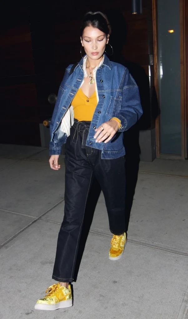 In New York, the supermodel appeared in stylish velvet Nike sneakers that can be bought for only $85.